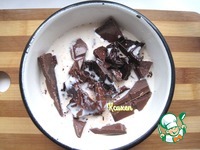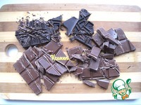 Шоколад порубим ножом. Я взяла часть молочного шоколада, часть горького шоколада. |