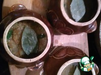 В каждый горшочек заливаем по полтора стакана воды и добавляем листочек лаврушки. |