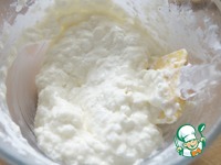 Для творожного крема: смешиваем творог, яйцо, ванилин и сахар до однородного состояния. |