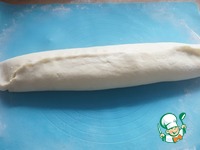 Сворачиваем тесто с начинкой рулетом и защипываем края. |