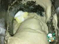 Тесто в начале замеса - мягкое, упругое, собирается в колобок, по дну не мажется. Через 10 минут тесто размягчается, становится липким, мажется по дну. Это нормально. Тесто на заварке всегда так себя ведет. Добавлять лишней муки не нужно. Иначе получится плотный хлеб. |