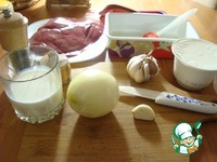 Форму смазываем оливковым маслом, выкладываем на дно лук, далее-печень, порезанную небольшими кусочками. Печень чуть подсаливаем и перчим по вкусу. |