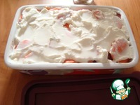 Сливки подсаливаем в стакане и выливаем в форму. |