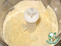 Замороженный маргарин порезать на кусочки и добавить в муку с разрыхлителем. |