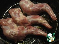 Обжариваем кролика небольшими порциями на сильном огне на топленом масле с двух сторон. |
