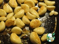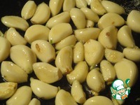 Кролика пока отставляем. На сковороду, где мы его обжаривали, высыпаем чеснок. |
