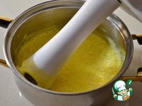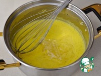 Когда смесь достигнет 82 градусов, т. е. дойдет практически до кипения и крем начнет загустевать, снимаем его с огня и добавляем отжатый желатин. Хорошо перемешиваем. |