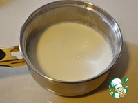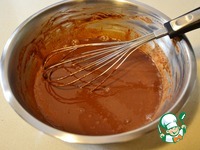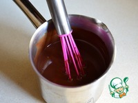 Теперь сделаем шоколадный мусс. Замачиваем желатин в очень холодной воде. Подогреваем молоко и добавляем отжатый желатин, хорошенько перемешиваем. |