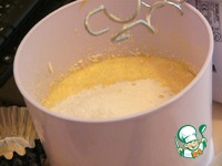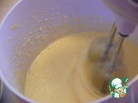 Продолжая взбивать, добавить мягкое масло и молоко. |