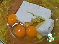 В это время смешиваем начинку. Яйца вбиваем в творог или сливочный сыр-коробочку. |