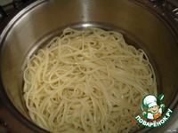 Спагетти отварили и откинули (стечь воде). Остудили. |