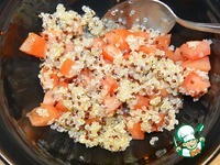 Смешать нарезанные помидоры с отварным киноа. |