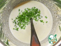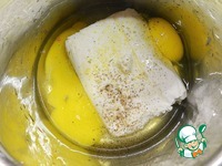 Смешать в кастрюле яйца, творог, соль и перец. Перемешать. |