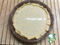 Тесто раскатать и выложить в форму. Разровнять и обрезать лишнее. Вылить начинку. |