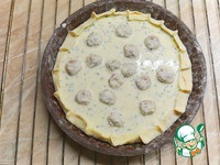Выложить фрикадельки. Желательно, чтобы они слегка виднелись. Окунуть их в начинку, чтобы при выпечке не высушились. |