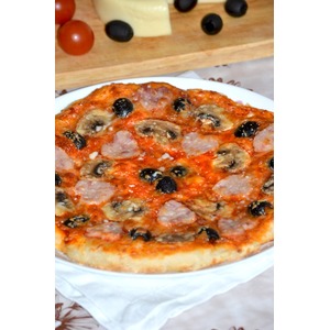 Описание: С помощью этой пиццы из бесподобного Неаполитанского теста от Питера Рейнхарта я хочу сказать "Люблю" своей семье, которая ее просто обожает. Тесто у пиццы потрясающее, нежное и с "пузырьками " как у всей хорошей итальянской выпечки. С некоторых пор пицца стала для нас особенным блюдом. Так случилось, что в тринадцатую годовщину нашей свадьбы мы попали в Ниццу. Так вот, вдоволь нагулявшись по Английской набережной и Цветочному рынку, мы набрели на небольшую и уютную пиццерию. Там мы заказали пиццу, решив таким образом отметить годовщину, пицца оказалась такой огромной, что еле-еле поместилась на нашем столике. Ее вкус был просто потрясающим, ничего подобного до этого момента мы не пробовали. Мы часто вспоминаем ту годовщину особенно, когда печем пиццу, это было невероятное приключение хоть и с цифрой 13.