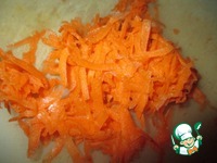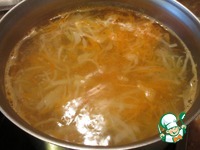 В кипящий куриный бульон положить нарезанную капусту и морковь. Варить овощи до полуготовности. |