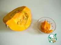 Пару кусочков тыквы, очистить и запечь в микроволновке или в духовке. Остудить, пробить блендером. Отмерять 50 гр. |