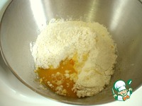 Ставим опару, просеянную муку растереть с дрожжами, влить воду, добавить тыквенное пюре, замесить тесто. Миску затянуть пленкой и поставить для брожения на час. |