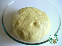 Тесто сформировать в шар, поместить в смазанную растительным маслом миску и поставить для подъёма, оно должно увеличиться в два раза, по времени это где-то час. |