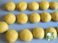 Выброженное тесто разделить на 16 частей, подкатать в шары, дать отдохнуть 10 минут. |
