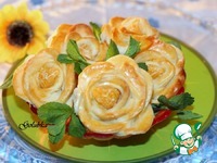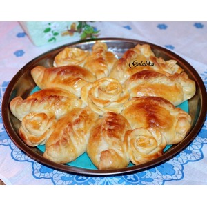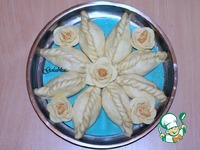 8. и защипываем пирожок. Из остатков теста, я вылепила 5 розочек и украсила пирог. |