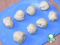 3. Тесто вторично тщательно вымесить, разделить на 8 частей, сформировать шарики, положить в миску под полотенце. |