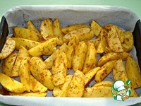 Картофель смешать с маринадом и запечь в разогретой до 180* духовке минут 30. |