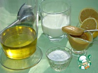 Пока запекается картофель, приготовим майонез. Для этого в высокий стакан влить оливковое масло, добавить горчицу, молоко, лимонный сок и щепотку соли. |