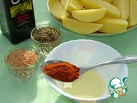 Картофель очистить и разрезать на четвертинки. Приготовить маринад. Для этого смешать растительное масло с паприкой, чесноком, пропущенным через пресс и прованскими травами. |