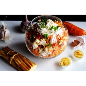 Описание: Салат из моркови и курицы на вкус очень сытный и пикантный, за счет копченого сыра и специй. Главное, этот салат не пересолить, так как копченый сыр очень соленый.
