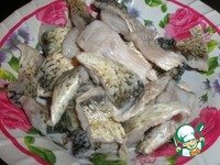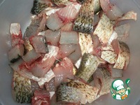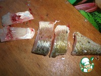 Отрезаем плавники и режем на такие кусочки и каждый кусочек пополам. |