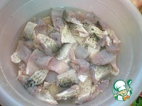 Рыбка наша посветлела от уксуса. Уксус слить, после этого нужно промыть несколько раз опять водой, чтобы убрать лишнюю кислоту. При этом нужно пробовать, если вам кисло, то промыть еще раз. |