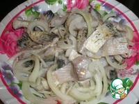 Затем рыбу промываем немного от соли и заливаем уксусом. Оставляем на 3-4 часа, время от времени перемешиваем ложкой. |