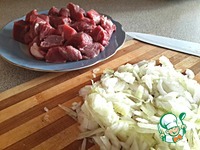 Моем мясо, обсушиваем и нарезаем кубиками. Нарезаем мелко лук. |