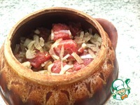 Наполняем его мяском, накрываем крышечкой, и ставим в предварительно разогретую духовку до 190° на минут 40, до смягчения мяса. |