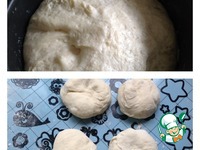 Оставить тесто в теплом месте до увеличения в объеме в 2 раза. Тесто разделить на 4 куска. |