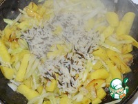 с нарезанным репчатым луком и слегка обжарить. |