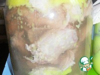 Я в ингредиентах не указала кол-во соли и сейчас поясню почему. Тузлук – это крепкий раствор обыкновенной поваренной соли, применяемый для засола различного сырья животного происхождения. Крепкий соляной раствор можно получить довольно необычным способом. Поставьте на плиту кастрюлю с водой, затем киньте в емкость большую картофелину. После закипания убавьте огонь и начинайте сыпать соль. При медленной варке картофель будет плавать примерно в середине жидкости. Кладите соль снова и снова, пока наша «заготовка» не начнет подниматься на поверхность. Как только она «выпрыгнет», выбрасывайте ее. После этого прекратите добавление в раствор поваренной соли. Прокипятите тузлук еще несколько минут, всыпав в конце готовки различные специи. (поэтому кол-во соли не было указано). Пока вода кипела и вы определяли сколько необходимо соли, нужно разделать утку. Помыть ее хорошенько изнутри и снаружи (понятное дело, что утка при этом ощипана и все лишние волоски опалены огнем). Внутренности утки-сердце, печень и желудок-я использовала для приготовления паштета. Всякую остальную "бяку" просто выбросила. Саму утку порезали на куски, которые удобно пролазят в горлышко 2-х или 1,5 литровой банки. Вот теперь загружаем в тузлук куски утки. Провариаем минут 20. Затем в стерилизованные банки укладываем куски мяса и заливаем горячим тузлуком. Закатываем крышками, переворачиваем, укутываем теплым одеялом и оставляем так до полного остывания.