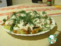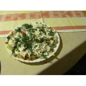 Описание: Вариантов салатов с опятами много. Попробуйте и этот. Он приятен еще и тем, что в нем нет майонеза. Данный салатик попробовала в одном из кафе, и он мне очень понравился. Для меня это может быть просто отдельным блюдом, например, на ужин.
