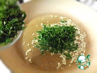 На сковороде разогреть оливковое масло, добавить чеснок и обжарить его пару минут на среднем огне, а затем добавляем петрушку. Немного обжариваем все вместе |