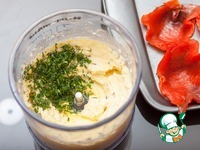 Творожный сыр, вареные яйца, очищенные зубчики чеснока, куркуму (для цвета), перец и соль (в том случае, если рыба слабосоленая) поместить в чашу кухонного комбайна и измельчить до однородной массы. |