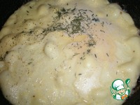 Выливаем на хорошо разогретую сковородку. Я добавила сушеный укроп, уж очень его люблю. В сезон овощем можно добавить и сладкий перчик и лучок, и помидорку, кто что любит) И накрываем крышкой. |