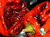 Перец вымыть и запечь в духовке 20-25 минут при 180 С. Остудить, удалить плодоножку, семена и снять шкурку. Разрезать перец вдоль на несколько частей. |