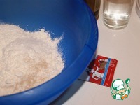 Смешать вместе просеянную муку, дрожжи, соль и сахар. |