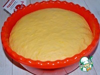 Вот так тесто поднялось. Аккуратно обмять его, накрыть емкость пищевой пленкой и убрать в холодильник на ночь, а можно и сразу формовать булочки. У меня тесто стояло ночь |