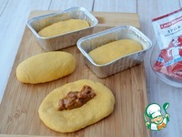 Сформировать из теста овалы, внутрь каждого положить чайную ложку с небольшой горкой сгущенного вареного молока, тщательно защипнуть. Начинки много класть не нужно, а то будет вытекать. |