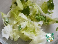 1. В чашку порвать айсберг, приправить лимонным соком, солью и перцем. Добавить листочки кинзы. |