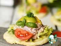 4. На лепешку выложить тунец, сверху кусочек авокадо и четвертинки помидора. Украсить по желанию. Приятного аппетита! |
