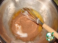 Смешиваем яйца, сахар, какао, корицу, ванильный сахар, соду гашеную уксусом. |